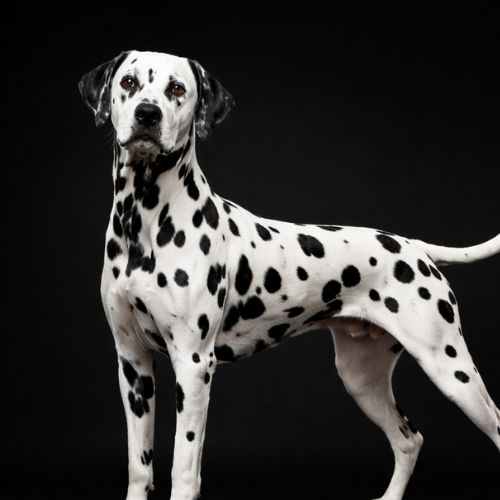 El Dálmata es una raza atlética, elegante y fácilmente reconocible por su característico manto blanco con manchas negras o marrones bien definidas. De estructura equilibrada y musculatura firme, transmite energía, resistencia y una presencia segura sin resultar pesado.