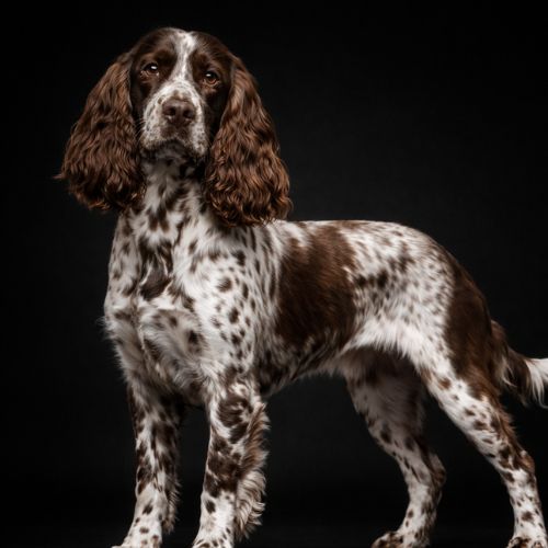 El Cocker Spaniel Inglés es una raza equilibrada, alegre y extremadamente expresiva. De tamaño medio y estructura compacta, destaca por sus largas orejas cubiertas de pelo sedoso y su mirada dulce pero vivaz.